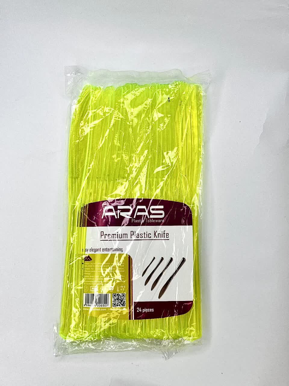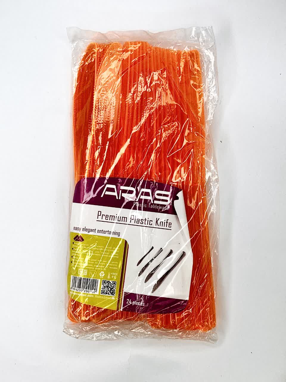 نام محصول :کارد یکبار مصرف رنگی وزن قطعه: (گرم) 2.87 طول قطعه: ( میلی متر)200 طیف رنگی : شفاف تعداد در بسته:24 عدد تعداد در کارتن:1200 عدد (50 بسته 24 عددی) ابعاد کارتن:(ارتفاع،عرض،طول)17 × 32 × 41(سانتی متر) ابعاد بسته: (سانتی متر)3 × 11 × 20 وزن بسته: (گرم) 147 وزن کارتن: (کیلوگرم)6